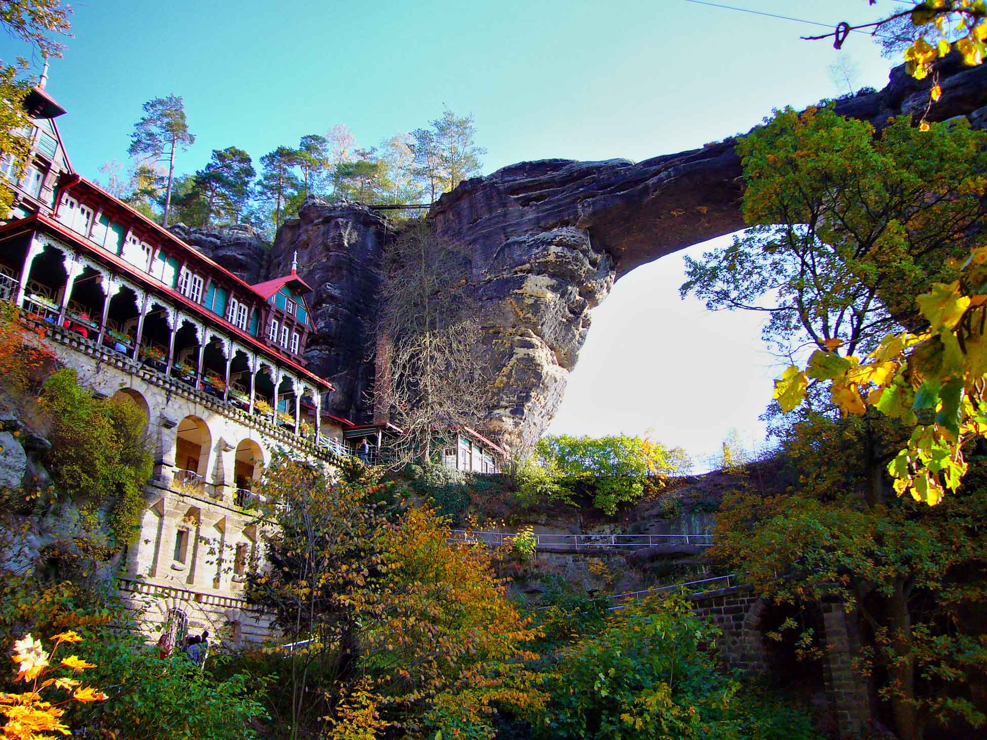 Na vlastní skalní most se nedostanete, protože je už od roku 1980 znepřístupněn, aby nedošlo k ohrožování přírodního úkazu davy sem přicházejících turistů. V roce 1982 se brána vyztužila speciální pryskyřicovou směsí, aby došlo ke zpomalení eroze. V přízemí zajděte do restaurace s původními malbami, v prvním patře se projděte po muzeu Národního parku České Švýcarsko. Legenda říká, že se blízko Pravčické brány kdysi skrýval poustevník Prebisch.